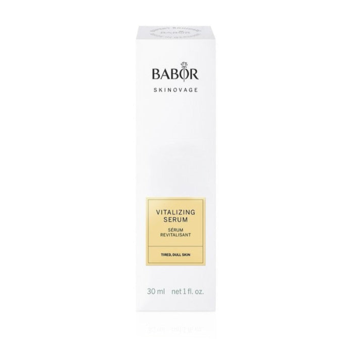 Če je koža pusta in ji primanjkuje energije, je SKINOVAGE Vitalizing serum hitra in prava rešitev, saj spodbuja lastne metabolične procese v koži. Koža je posledično sijoča in vidno prebujena. Kompleks aktivnih sestavin, ki je sestavljen iz ATP-ja, izvlečka iz algina in papaye, spodbuja celični metabolizem, regeneracijo kože in pomaga pri nastajanju v koži prisotnega naravnega vlažilnega faktorja, ki je ključen dejavnik pri zadrževanju vlage v koži. Izvleček kakava blokira proste radikale in ščiti kožo pred prezgodnjim staranjem kože, ki ga povzroča UV sevanje in modra svetloba.